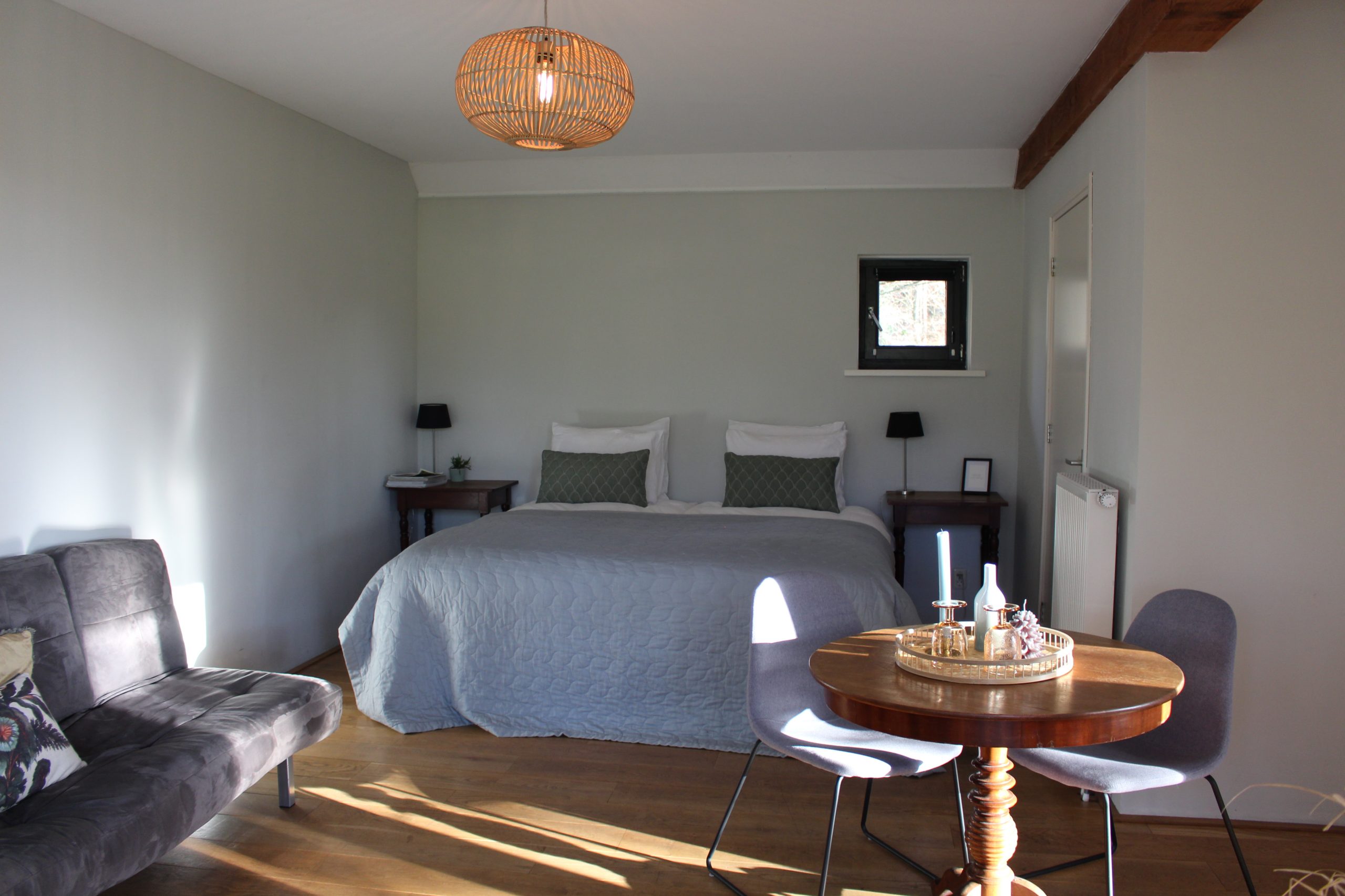 Deze kamer op de begane grond is voorzien van twee eenpersoons boxspring bedden (dubbelbed) en een zit-slaapbank. Daarnaast staat er een tafel en 2 stoelen. De kamer heeft een prettig rustige uitstraling met grijs/groene natuurtinten.